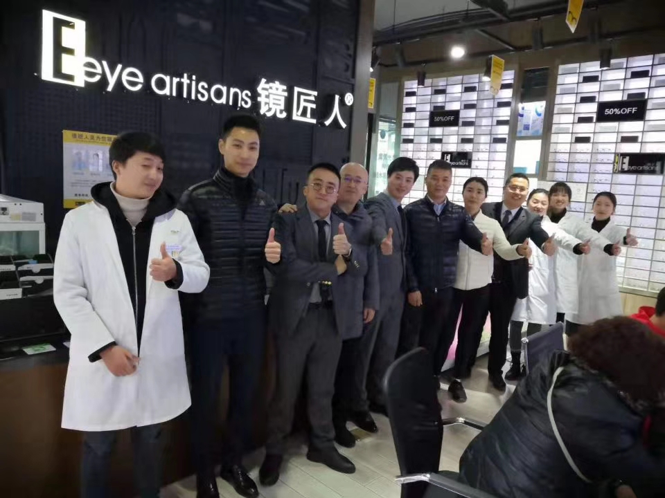 镜匠人创始人邱杰先生带领全体员工对谢公晚先生的到来表示了热烈的欢迎,并在店内展开了亲切的技术交流和意见指导。