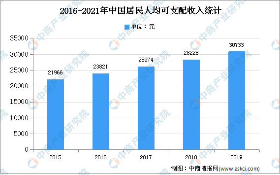 近年来,随着我国宏观经济持续稳定增长,我国居民收入水平有了大幅提高,生活水平明显改善,居民购买力得到显著提升,人们对非生活必需品和高端消费品消费需求的增加,推动了眼镜市场的发展。数据显示,2019年,全国居民人均可支配收入30733元,比上年名义增长8.9%,扣除价格因素,实际增长5.8%。