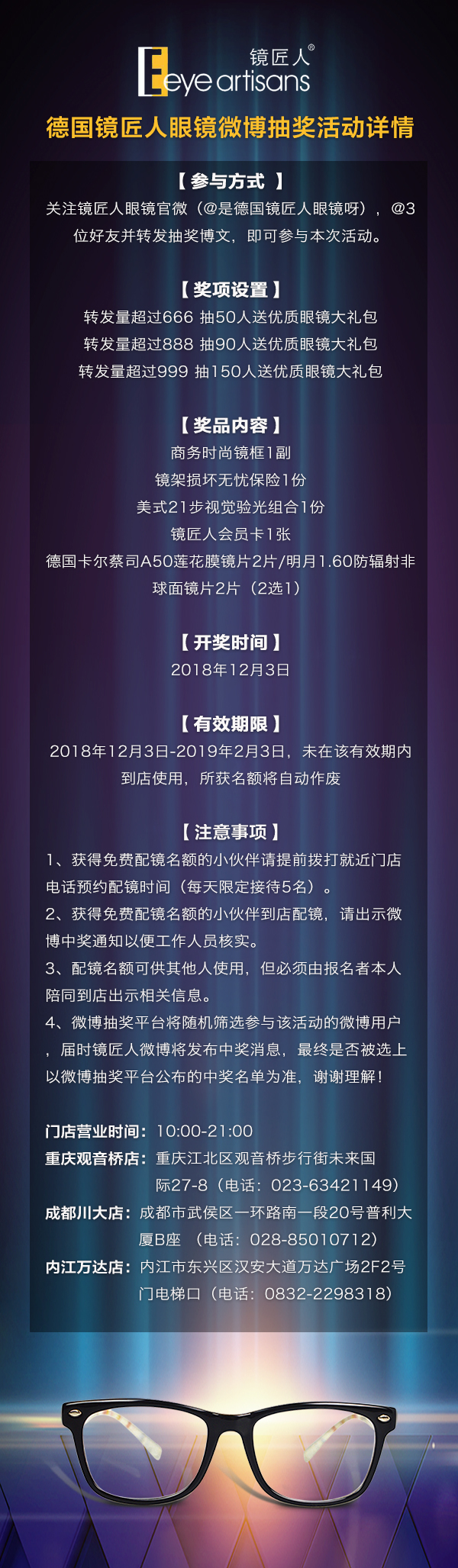 关注“是德国镜匠人眼镜呀”新浪官博,了解参与方式即可参与抽奖活动,看下图了解详情