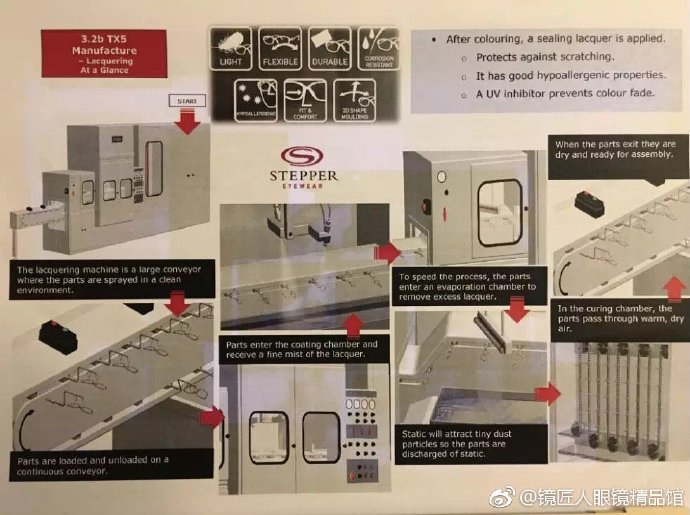 如果说我们只是浅尝辄止,来自STEPPER EYEWEAR的Peter才真正诠释了德国人精益求精的匠工精神。这是一家有上百年历史的眼镜品牌,从板材架到金属架,车床的自动化程度让人咋舌。我曾参观过法国的硬性接触镜工厂、荷兰的人工晶状体工厂、新加坡的软性接触镜工厂,和这些精密医疗器械的流水线相比,这家框架眼镜公司的流水线丝毫不落下风。拿对加工精密度要求最高、耗材最贵的钛架来说,一条流水线在一小时内竟能产出600副镜架,其效率叹为观止。