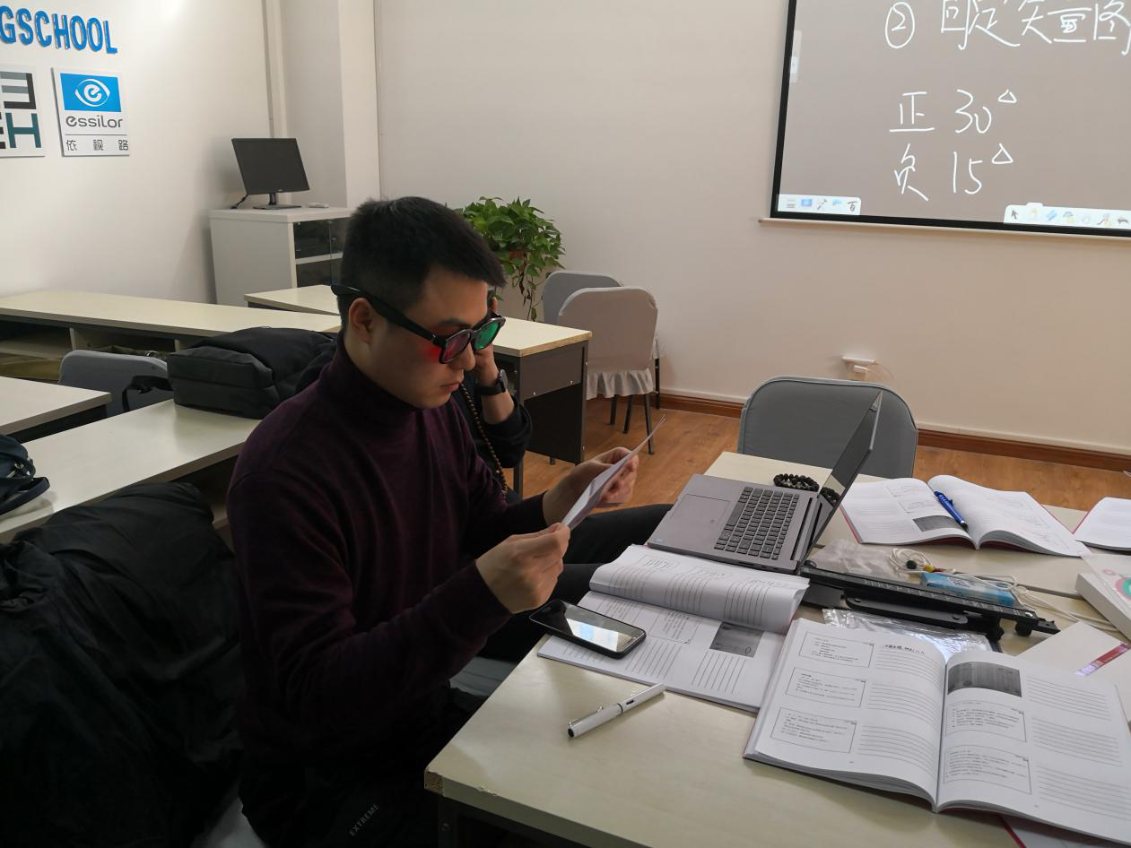 第九日的上午,镜匠人继续进行视觉功能训练的实际操作。带习老师分别讲解每个道具的使用方法以及训练的终点和目的。