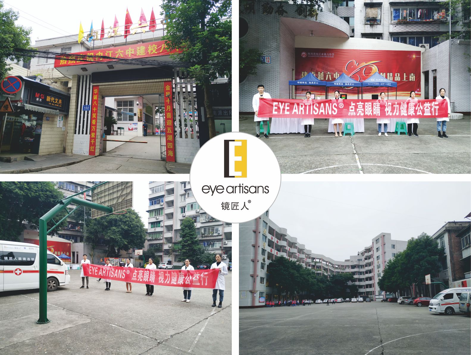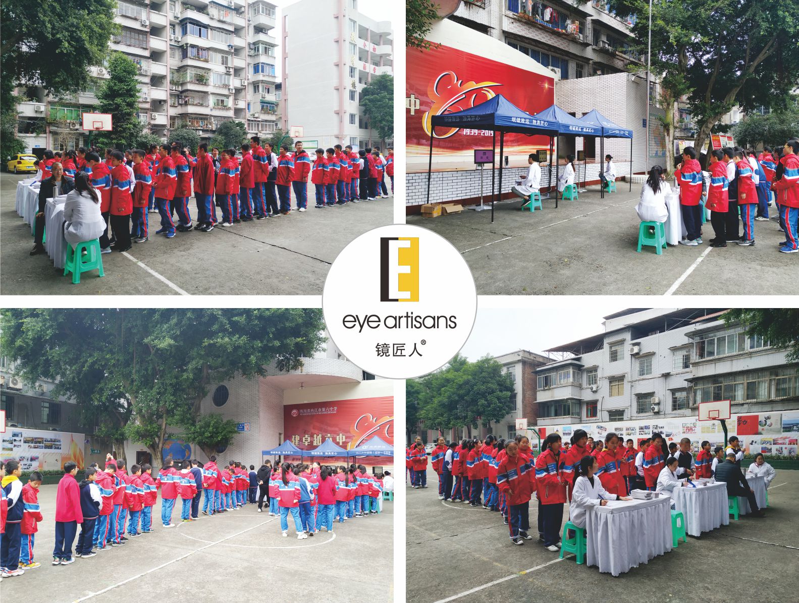 11月4日镜匠人团队来到内江六中上南校区开展视觉健康公益活动,本次活动主要协助全校学生体检,对眼睛健康情况进行检查、开展爱眼咨询和相关保健资料发放等服务。
