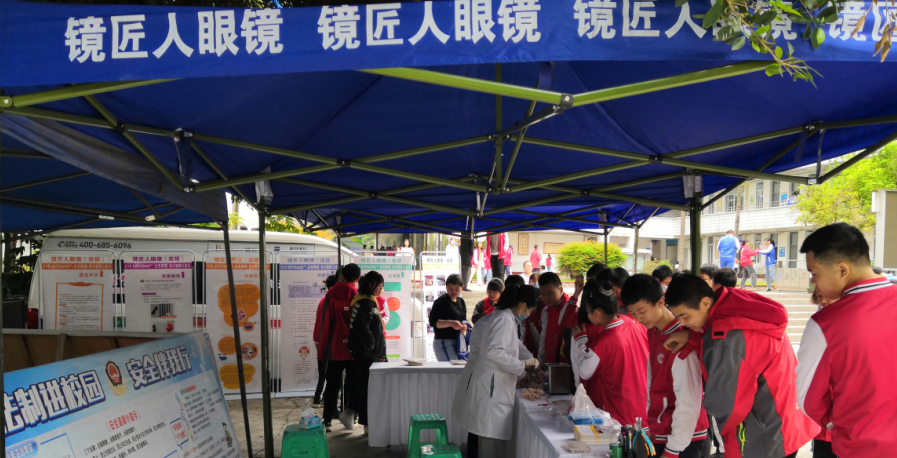 2021年3月19日,“点亮眼睛,视觉健康公益行”,第四站,镜匠人团队来到内江东兴初中开展视觉健康公益活动,本次活动是对在校学生的视力健康状况进行筛查,宣讲爱眼知识和回答学生们的眼保健咨询,并同时对学生的眼镜进行清洗、调校、维修。镜匠人眼镜让每一个人都拥有视觉健康!