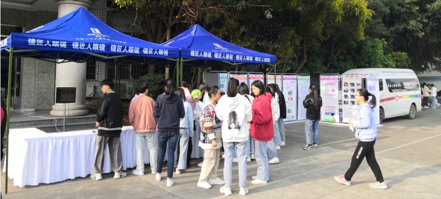 2021年3月24日,“点亮眼睛,视觉健康公益行”,第六站,镜匠人团队来到内江医科学校开展视觉健康公益活动,本次活动是对在校学生的视力健康状况进行筛查,宣讲爱眼知识和回答学生们的眼保健咨询,并同时对学生的眼镜进行清洗、调校、维修。镜匠人眼镜让每一个人都拥有视觉健康!