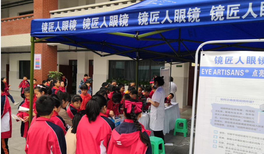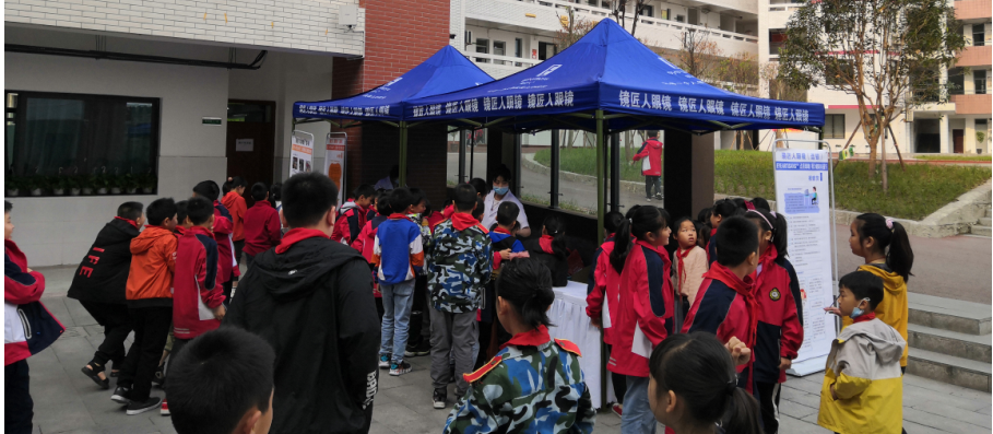 2021年3月31日,“点亮眼睛,视觉健康公益行”,第八站,镜匠人团队来到内江十三小开展视觉健康公益活动,本次活动是对在校学生的视力健康状况进行筛查,宣讲爱眼知识和回答学生们的眼保健咨询,并同时对学生的眼镜进行清洗、调校、维修。镜匠人眼镜让每一个人都拥有视觉健康!