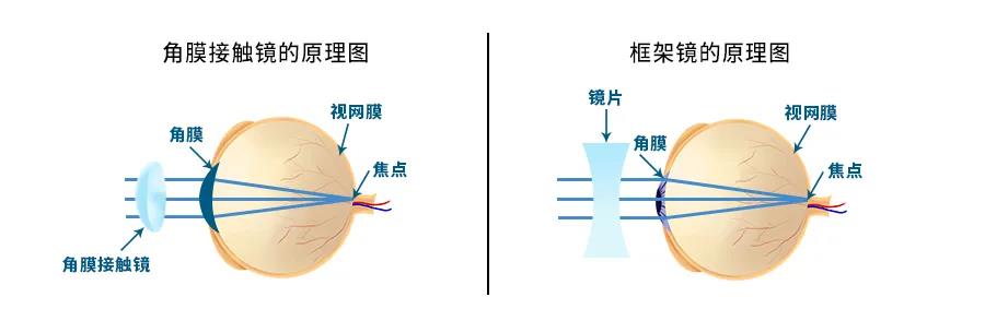 角膜接触镜的矫正原理与框架眼镜基本相同,不同的是,由于角膜接触镜是与角膜直接接触的,所以镜片到达角膜顶点的距离有所缩短,减少了框架眼镜所致成像放大率的问题,能够消除框架眼镜的三棱镜作用,消除斜向散光,减少双眼视网膜像差,使用起来也更加安全、方便、美观。