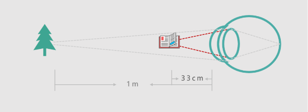 人在看近时,需要使用调节。所谓调节就是:为了看清近距离的目标,通过眼内肌肉——睫状肌的收缩,使眼内晶状体弯曲度增加,从而增强了眼的屈光力,使近距离物体在视网膜上形成清晰的图像。